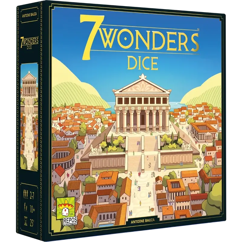 7 Wonders Dice ist die dynamische Würfelspiel-Variante des beliebten Kennerspiels 7 Wonders. Anstelle von Karten nutzt du Würfel, um deine antike Metropole strategisch weiterzuentwickeln. In jeder Runde wählt ihr gleichzeitig Würfel aus dem zentralen Forum und nutzt deren Symbole, um Gebäude in eurer Stadt zu errichten, Ressourcen zu sammeln, militärische Macht aufzubauen oder wissenschaftliche Fortschritte zu erzielen. Dabei musst du deine Nachbarstädte stets im Auge behalten, denn ihre Entwicklung beeinflusst deine Entscheidungen – und militärische Konflikte sind vorprogrammiert.