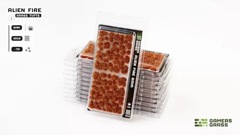 Alien Fire (6 mm) von Gamers Grass – ca. 70 selbstklebende rot-orange Tufts für Lava-, Sci-Fi- und Fantasy-Bases mit glühender Atmosphäre.