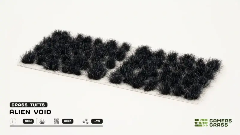 Alien Void liefert tiefschwarze Akzente für düstere Bases – ca. 70 Tufts (6 mm), selbstklebend & sofort einsetzbar.