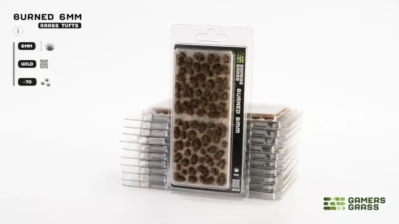 Burned Tufts 6 mm Wild schafft Atmosphäre pur. Die dunklen, fast schwarzen Büschel lassen jede Base wie nach einem Brand aussehen. Ideal für apokalyptische Szenen, Lavafelder oder zerstörte Landschaften – perfekt, um Kontraste und Drama zu erzeugen.