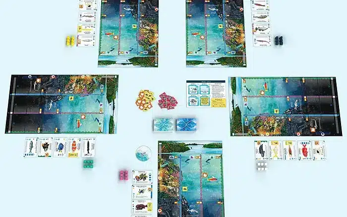 Erforscht die Ozeane über 4 Runden: Fische entdecken, Eier sammeln & Schwärme bilden – je tiefer, desto besser. Für 1–5 Spieler, ab 10 Jahren, 45–60 Minuten.