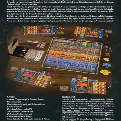 Die Legende vom Golem ist eine der faszinierendsten Geschichten der Welt und hat ihre Wurzeln in der jüdischen Tradition. In Golem inspiriert diese Geschichte ein strategisches und komplexes Spiel, in dem die Spieler in die Rolle von Gelehrten schlüpfen, die die berühmten, aus Lehm geformten Wesen wieder zum Leben erwecken wollen.