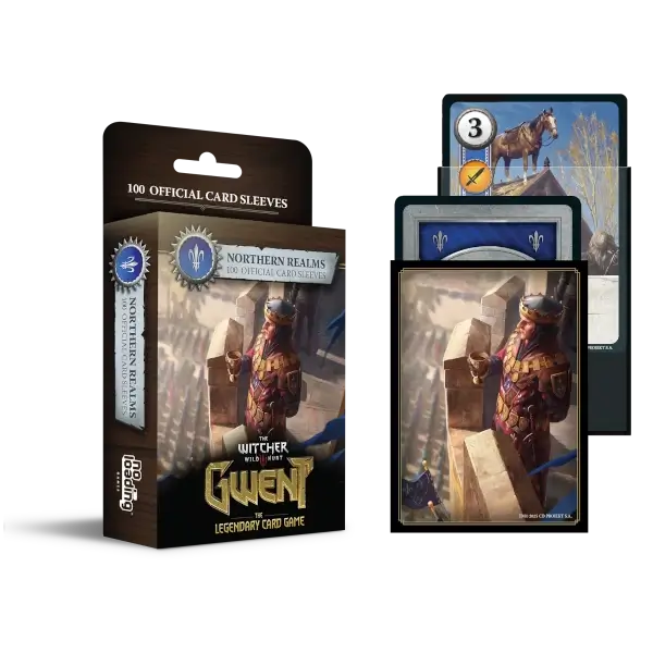 100 offizielle Gwent-Kartenhüllen im Northern Realms Design. Matte Oberfläche, perfekte Passform für Standardkarten. CD PROJEKT RED Originalprodukt.