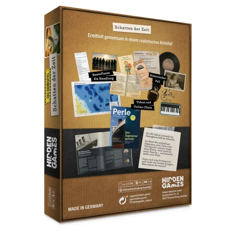 „Hidden Games Tatort: Schatten der Zeit“ vermischt Tauchabenteuer mit klassischem Krimi-Rätselspiel: Die Entdeckung der Hestia-Taschenuhr öffnet ein Netz aus Lügen, Technik und historischen Geheimnissen. Mit 120 bis 240 Minuten Spieldauer ist der Fall eine echte Herausforderung – ideal für Fans, die kriminalistische Tiefe suchen und bereit sind, sich ganz auf den Ermittlungsprozess einzulassen.