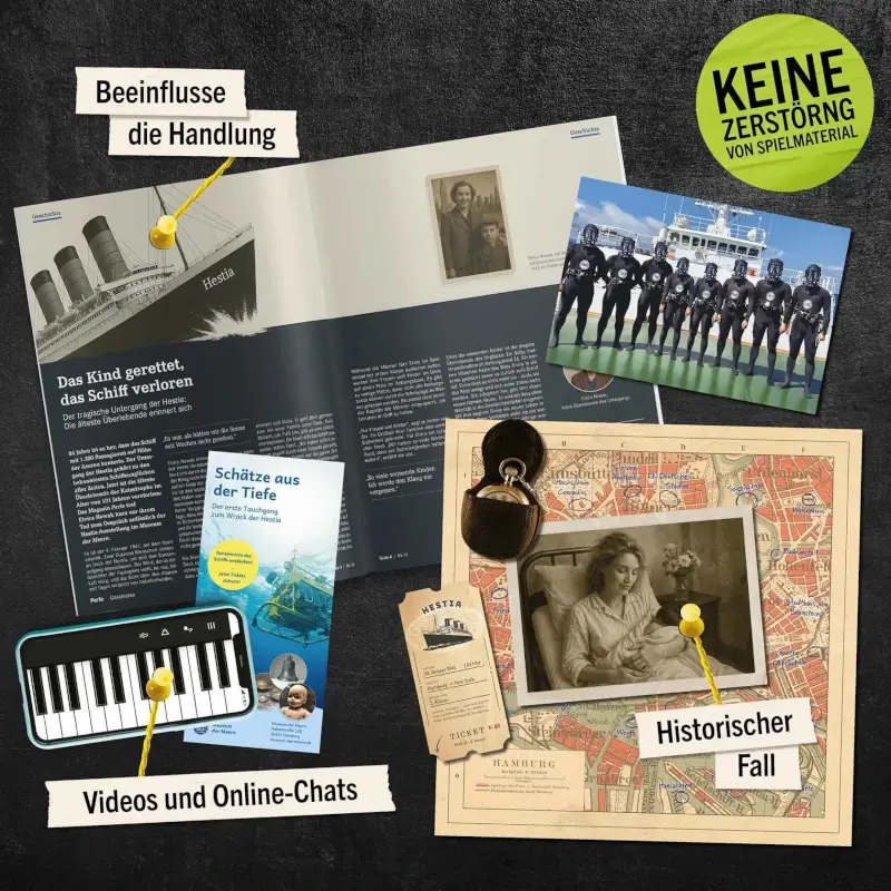 Seit 84 Jahren ruhte das Wrack der Hestia in der Tiefe. Doch als bei einer Tauchfahrt eine alte Taschenuhr geborgen wird, benötigt eine Professorin eure Hilfe bei der Lösung eines Rätsels. Verschollene Wahrheiten steigen auf und werfen lange Schatten bis in die Gegenwart. Warum sank die Hestia wirklich? Folgt den Spuren, deckt jedes Geheimnis auf – und prüft genau, wem ihr vertrauen könnt!
