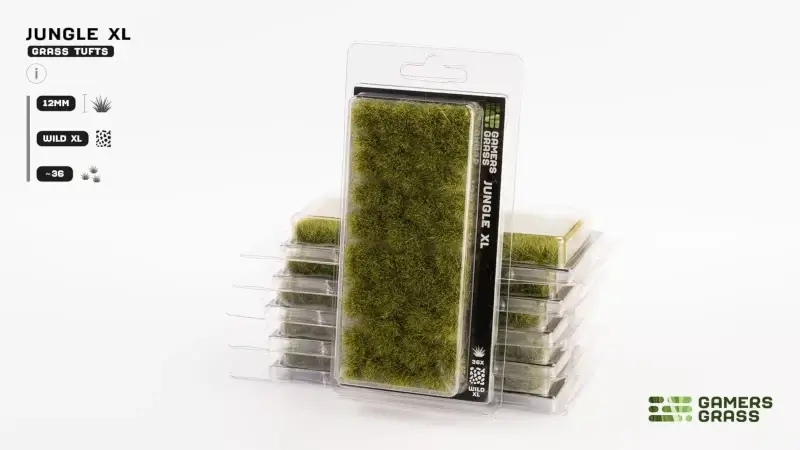 Jungle XL von Gamers Grass bringt tropische Tiefe auf deine Bases – kräftig grün, dicht gewachsen und perfekt für Dschungel- oder Urwald-Dioramen.