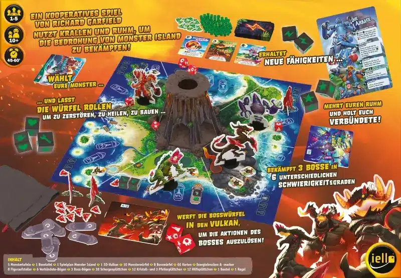 Gemeinsam statt gegeneinander: In King of Monster Island verbündet ihr euch, um den Boss zu besiegen. Für 1–5 Spieler, ab 10 Jahren, ca. 45–60 Minuten.