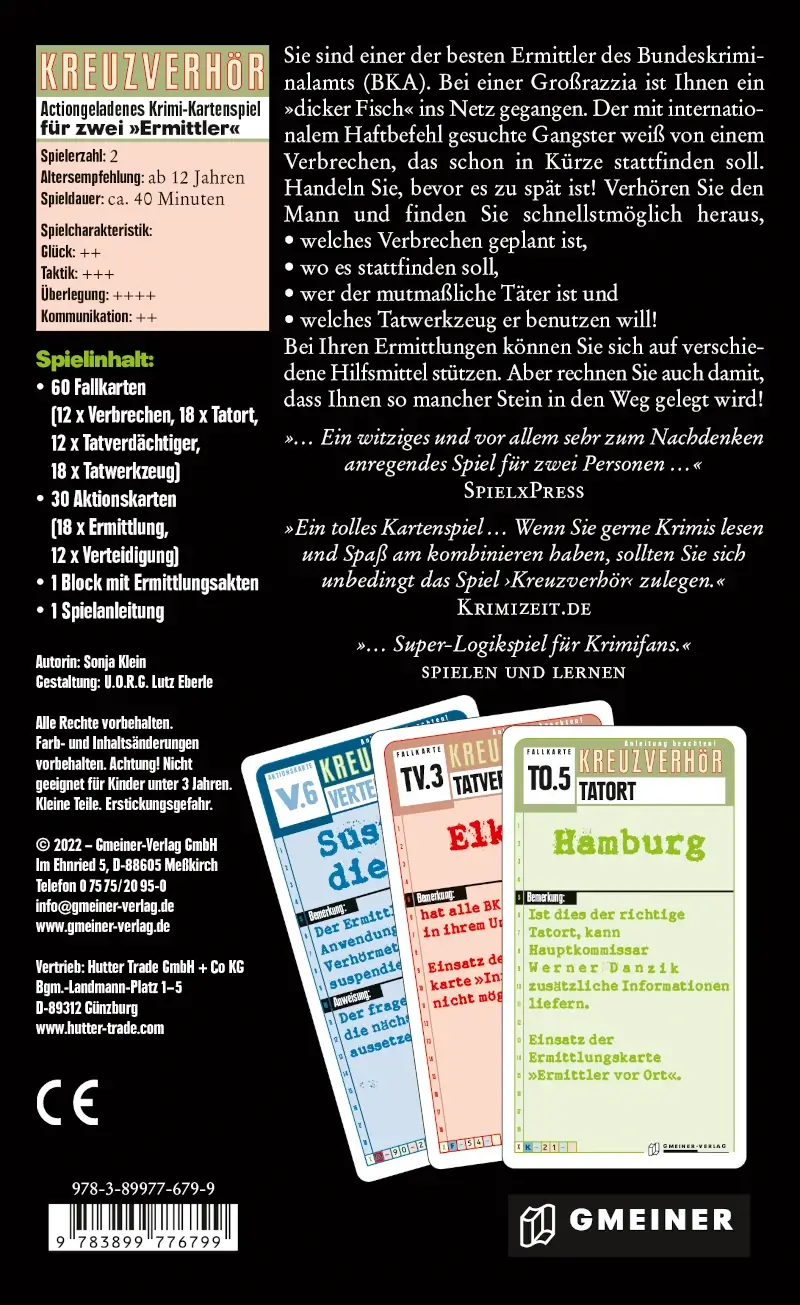 Kreuzverhör ist pures Ermittlungsduell: präzise Fragen, kluge Schlussfolgerungen und ein Hauch Bluff. Schlank erklärt, schnell gespielt – und doch überraschend knackig.