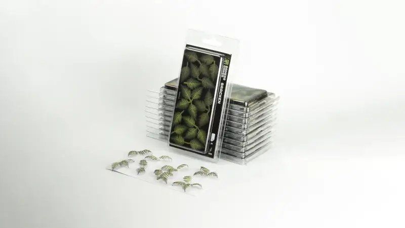 Dieser Bogen enthält 22 verschiedene Farben und Größen von Farnblättern für Ihre Modelle, Hobbyfiguren und szenischen Dioramen.