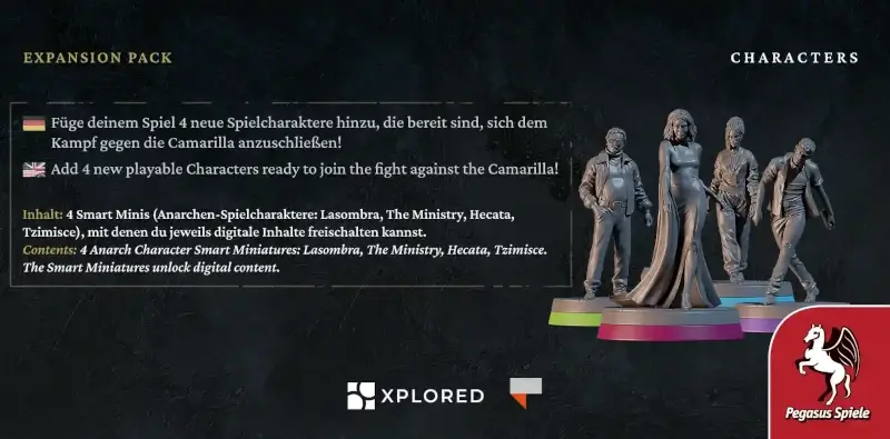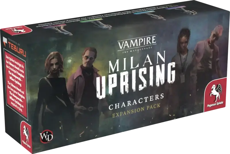 Playable Characters erweitert Milan Uprising um vier neue Vampire-Charaktere aus Clans wie Lasombra oder Tzimisce. Nur mit Grundspiel & Teburu, für 1–4 Spieler.