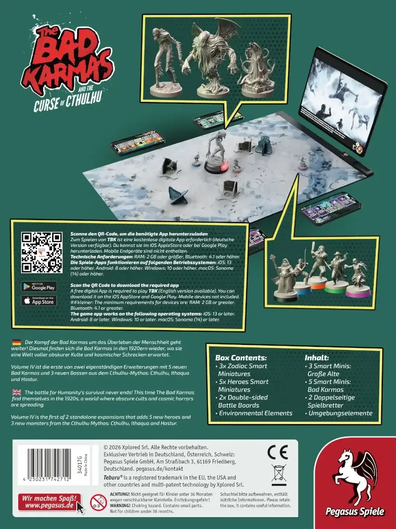 Volume 4 ist die erste von zwei eigenständigen Erweiterungen mit 5 neuen Bad Karmas und 3 neuen Bossen aus dem Cthulhu-Mythos: Cthulhu, Ithaqua und Hastur.